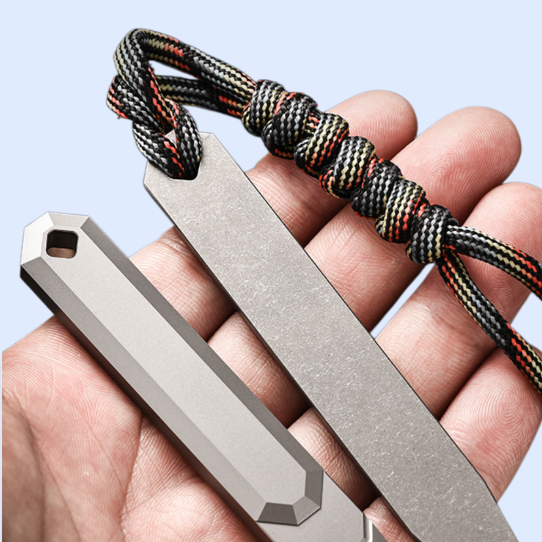 Lightweight portable titanium crowbar; corrosion-resistant; high strength; compact size for easy carrying; ideal for outdoor, survival, and emergency use.